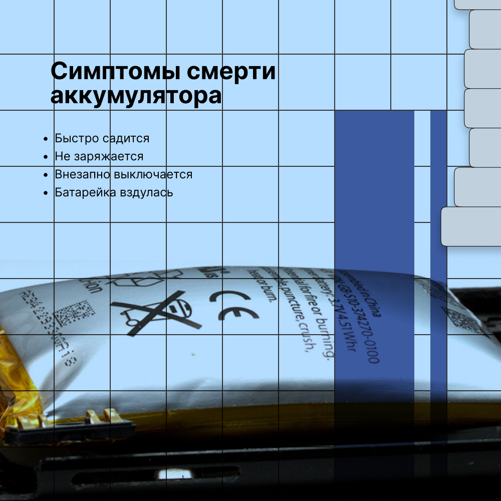 Хотя оригинальные комплектующие Apple имеют солидный срок службы, тем не менее, они не вечны. Кроме естественного износа, достаточно часто встречаются случаи аппаратной неполадки батареи. Причинами могут стать как сложные условия эксплуатации, так и производственный дефект. Иногда, наблюдается и вздутие аккумулятора, то есть его увеличение в размерах. Если смартфон стал сильно греться, неадекватно реагирует на подключение зарядного адаптера, появились признаки вздутия батареи — рекомендуем как можно скорее обратиться в наш сервис для бесплатной диагностики. Своевременное профессиональное вмешательство позволит быстро устранить неполадку и сэкономить на дорогостоящем ремонте. Ждем вас в нашем сервисном центре!