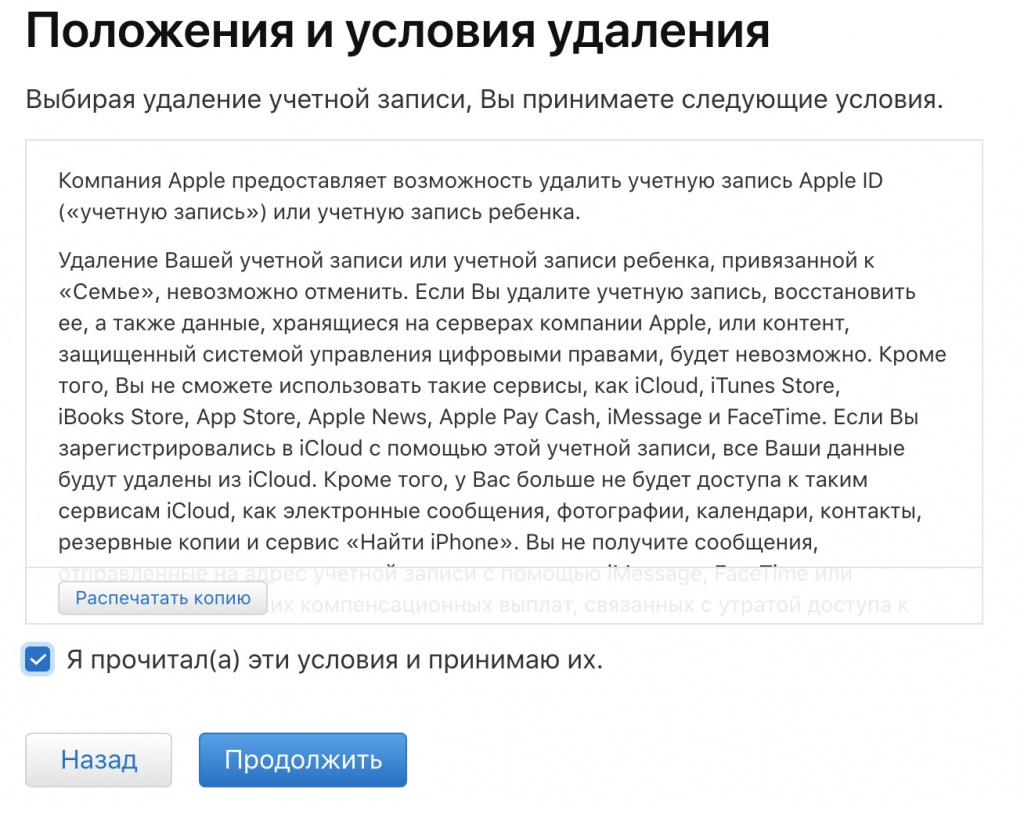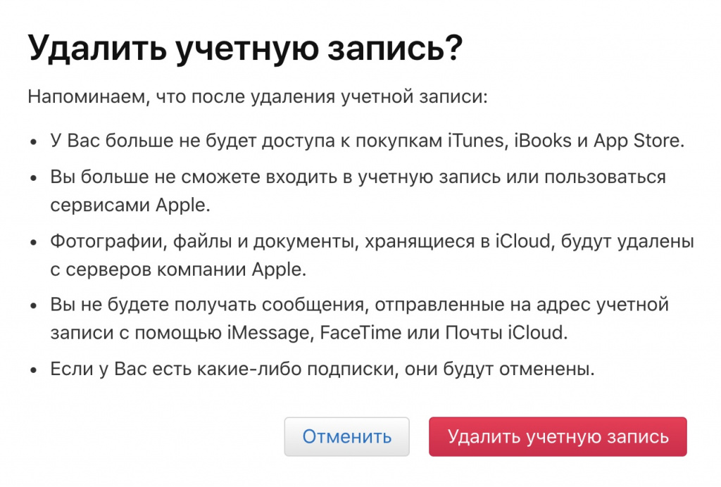 Все, после будет отправлен запрос на удаление iCloud и Apple ID и через 7 дней все данные и учетные записи будут стерты абсолютно безвозвратно!